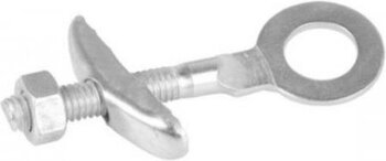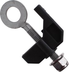 Monteer ‘m met de ring om de achterwiel as en zet de beugel vervolgens tegen de achtervork. Je kunt nu met de moeren de ketting op spanning brengen.